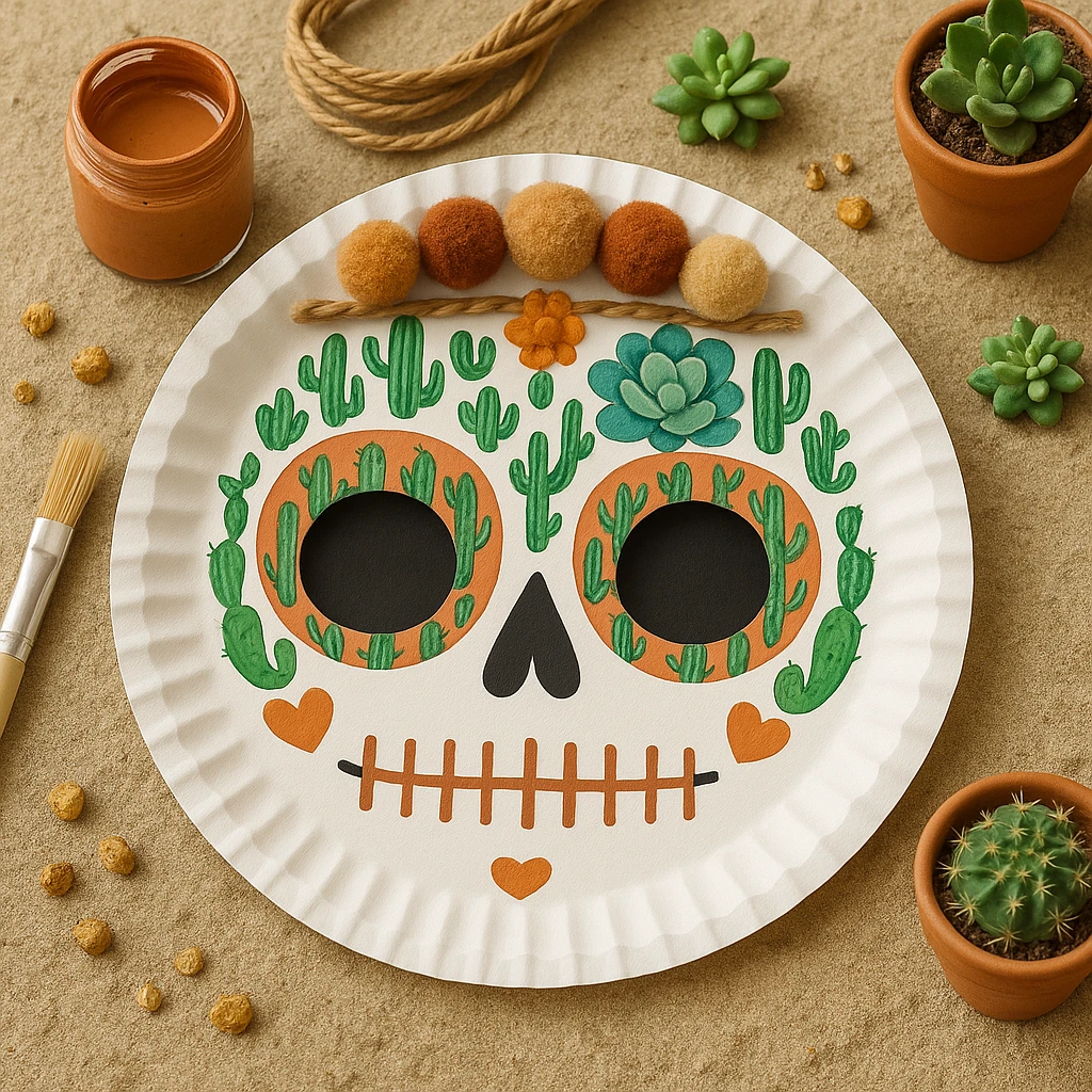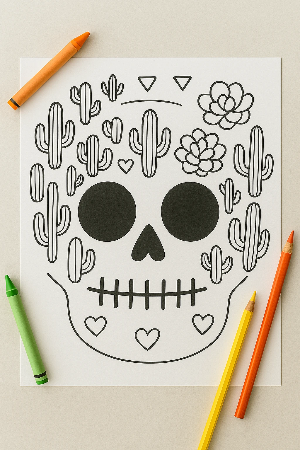 This craft is ideal for teaching about Dia de los Muertos and its cultural relevance. It’s also a great tie-in for lessons on desert ecosystems, Mexican art, or seasonal fall crafts. Perfect for classrooms, homeschoolers, or after-school art sessions.