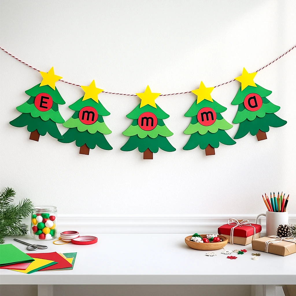 For shorter names or a quick version, create a mini banner using just the child's initials or festive words like "JOY" or "NOEL."