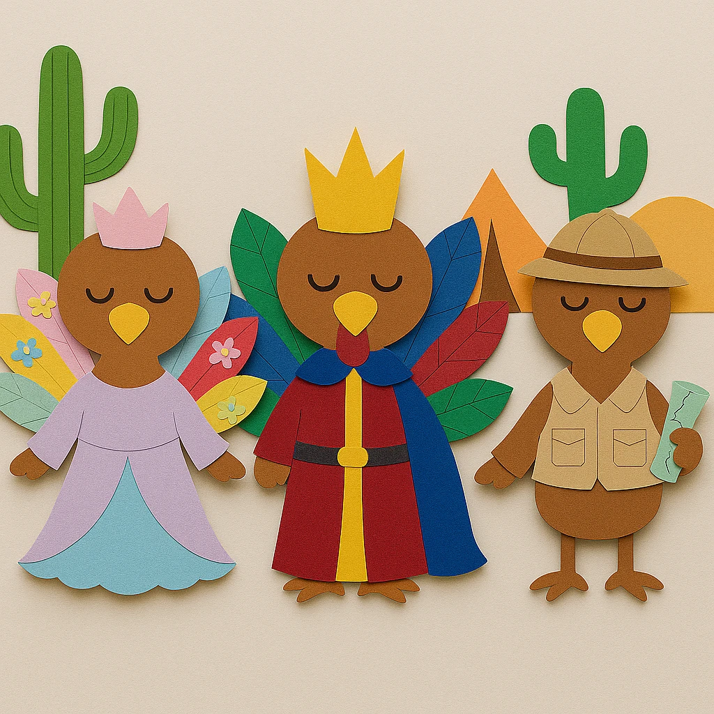 This craft fits beautifully into a Thanksgiving “Disguise the Turkey” theme, giving kids a chance to use their imagination while exploring new environments. Pair the activity with a lesson on desert habitats, animal adaptations, or a story-writing assignment where students describe their turkey's adventures as royalty in the desert. It’s also a unique way to celebrate seasonal creativity in both home and school settings.