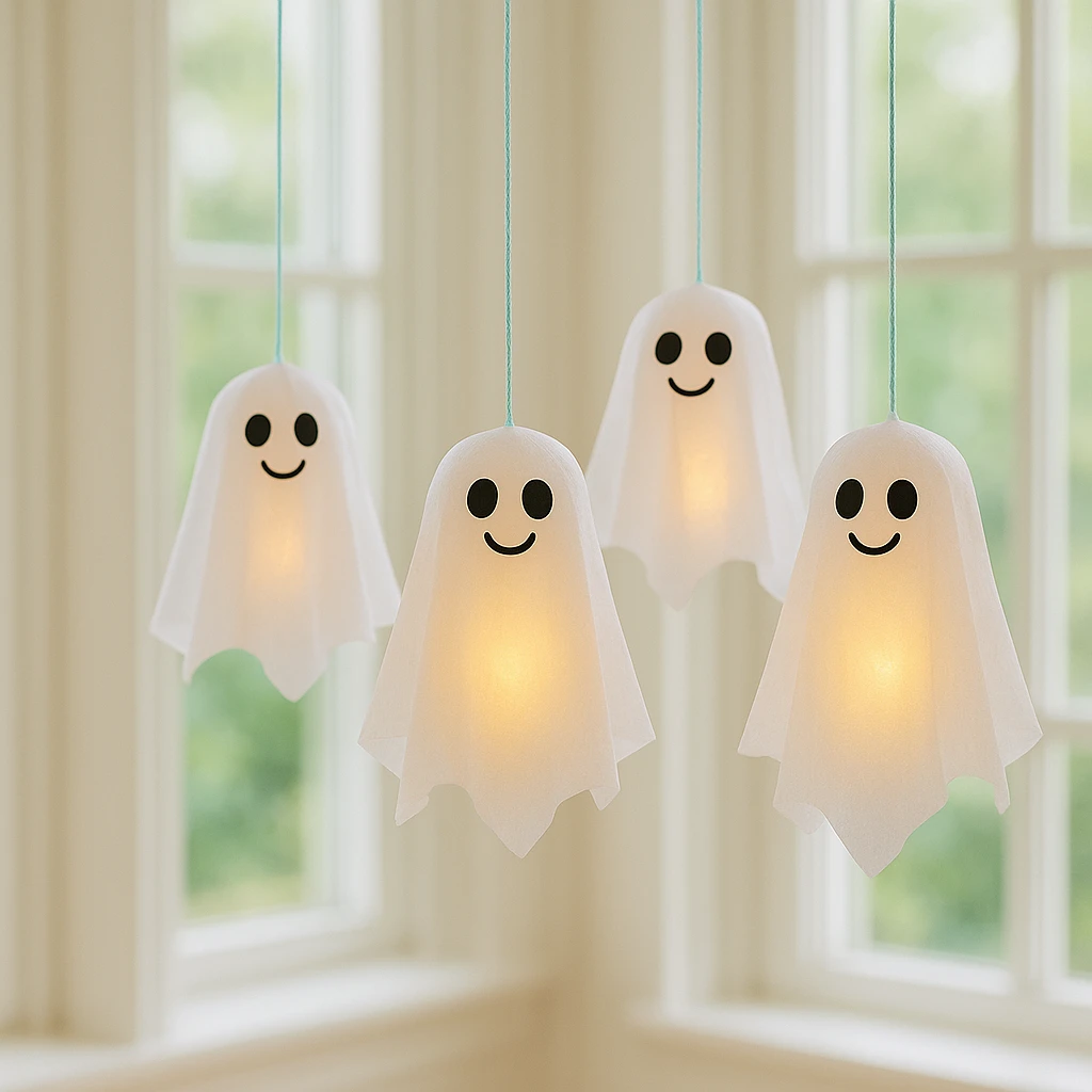 Made with a few basic materials like LED tealights, white fabric, and string, these lanterns come together quickly and safely—no open flames or complicated steps involved. It’s a great activity for a group craft session or a rainy afternoon at home. Plus, kids love seeing their ghost friends come to life and glow in the dark!