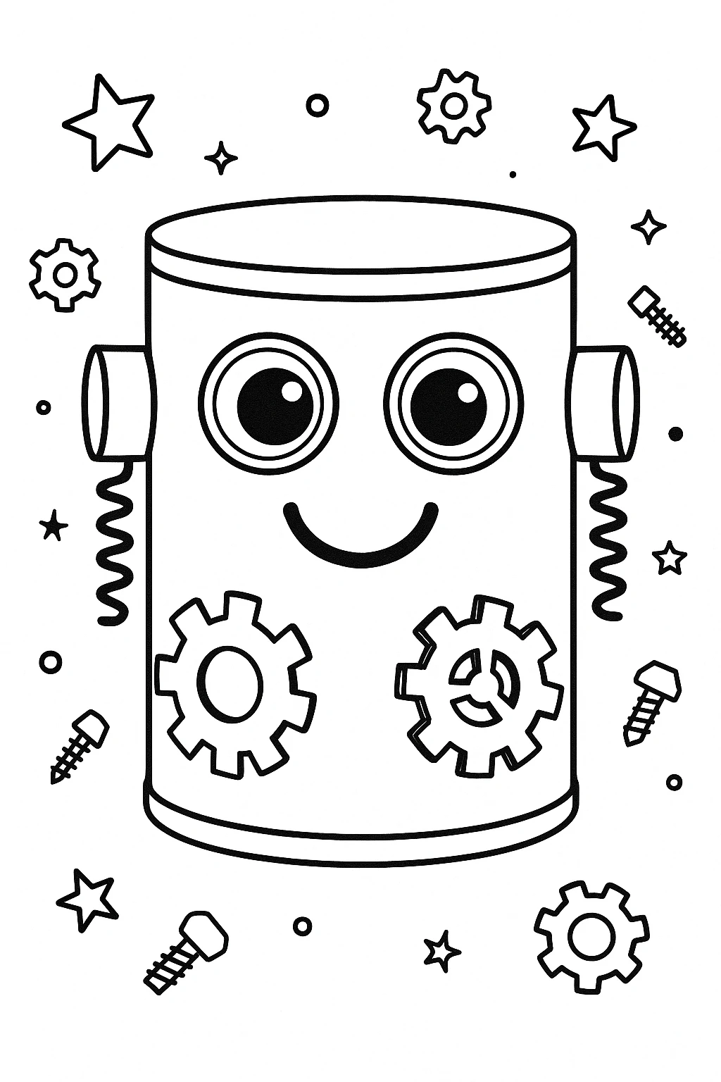 To make this craft even easier, we’ve included a printable template with robot eyes, mouths, and various gear shapes. Simply print the sheet, cut out the designs, and glue them onto your can. It's perfect for group activities where pre-cut pieces save time and effort.