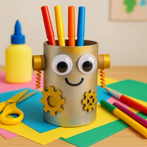 Crafting this pencil holder is a fantastic way to reuse tin cans and leftover craft supplies. With just a few simple materials—like googly eyes, pipe cleaners, and paint—you can transform an ordinary can into a cheerful robot with steampunk flair. Whether you're looking for a weekend activity, a school project, or something to brighten up your workspace, this DIY delivers creativity and practicality in one.
