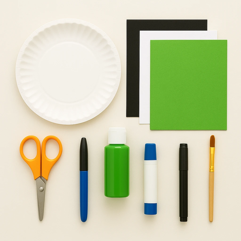 - Step 1: Paint the paper plate entirely with green acrylic paint. Let it dry completely.