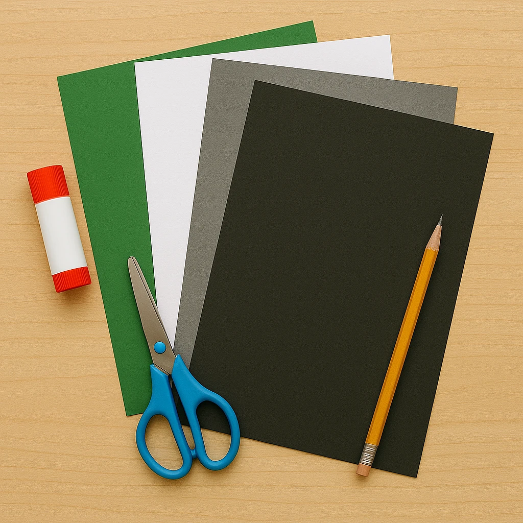 - Gray, black, white, and green construction paper