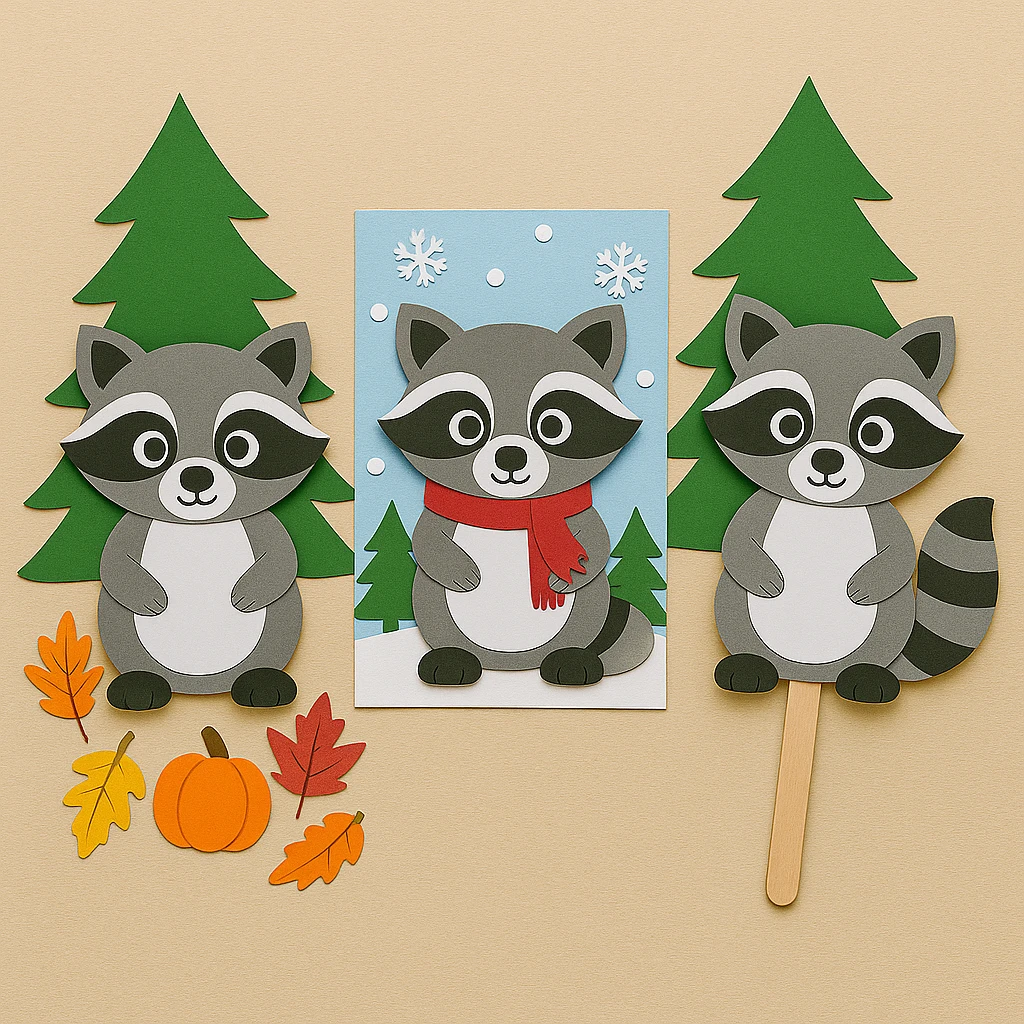 Forest Friends Style: Create a whole set of woodland animals like foxes, owls, or bears to go with the raccoon. Each animal can have its own paper background.