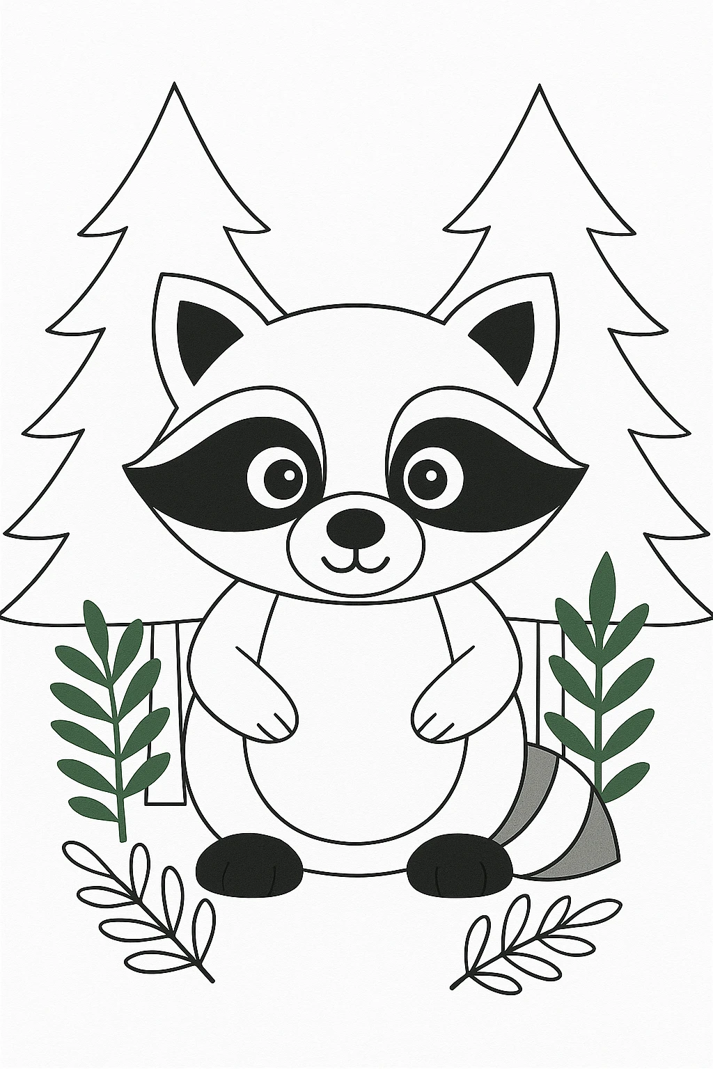 Using green paper, cut out pine trees and leafy plants to give your raccoon a cozy forest scene. Arrange them around the raccoon and glue them down. This not only enhances the design but also gives kids a chance to design their own woodland background.