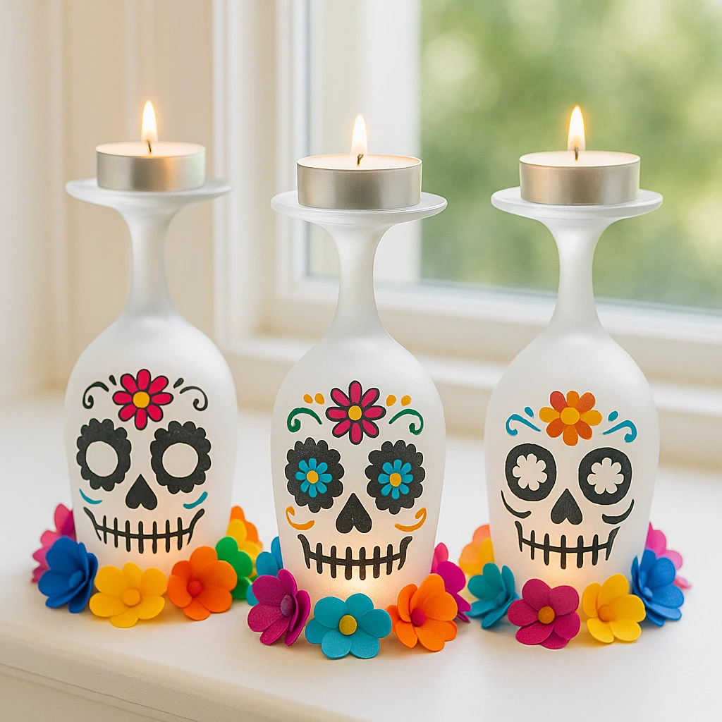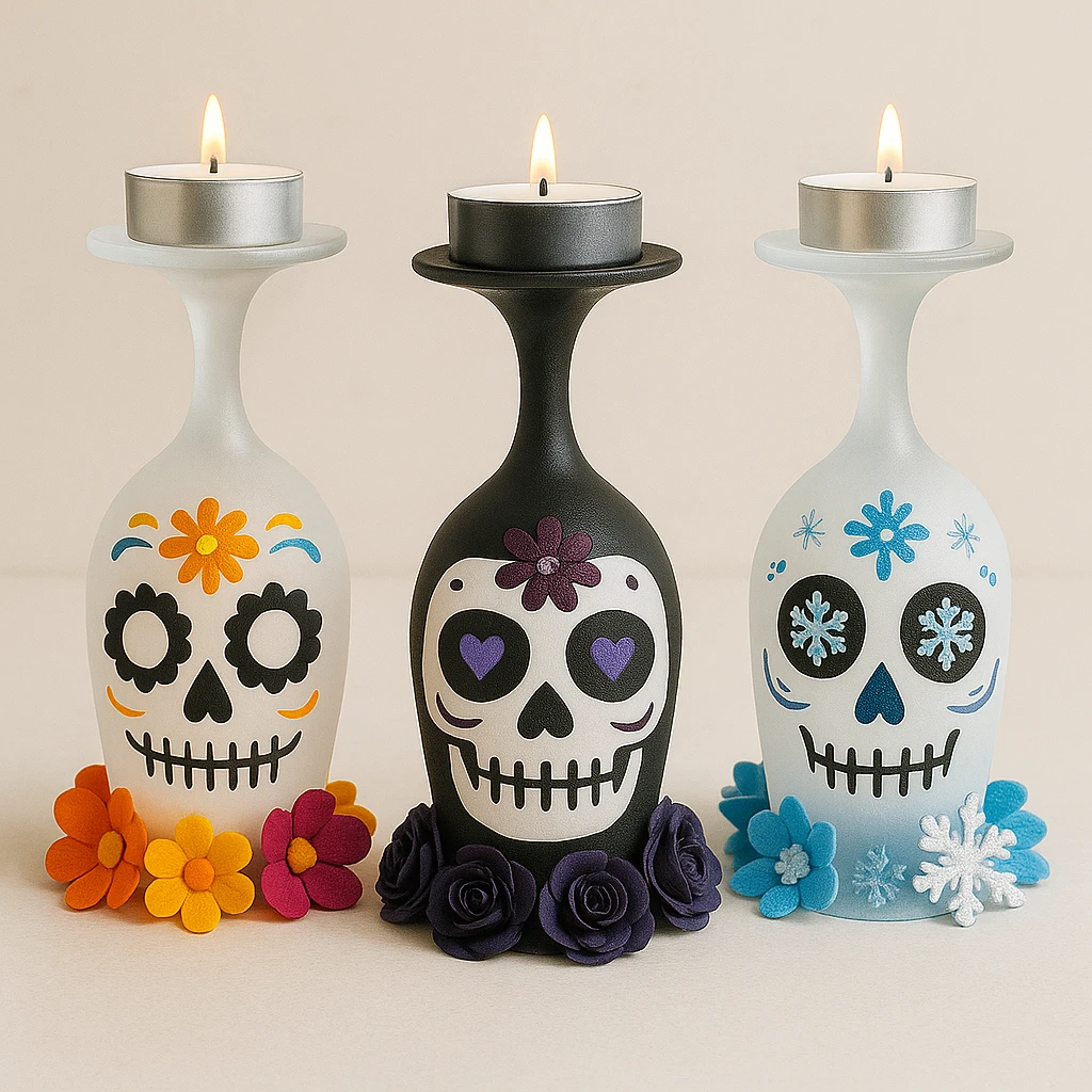 Crafting Sugar Skull Lanterns from frosted wine glasses is a wonderful blend of creativity, culture, and festive decor. Whether you're celebrating Día de los Muertos, decorating for Halloween, or simply enjoying a creative afternoon, this project is easy to customize and deeply meaningful. Light them up and let your artwork shine in honor of tradition and imagination.