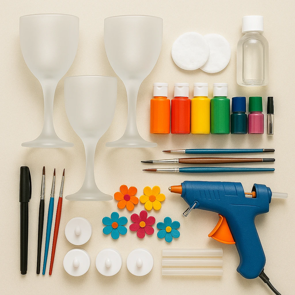 Before beginning, clean each wine glass thoroughly with rubbing alcohol to remove any oils or residue. This helps the paint adhere better and ensures a smoother finish. If your glasses are not already frosted, you can use a frosted glass spray to create the desired texture. Let them dry completely before moving on.