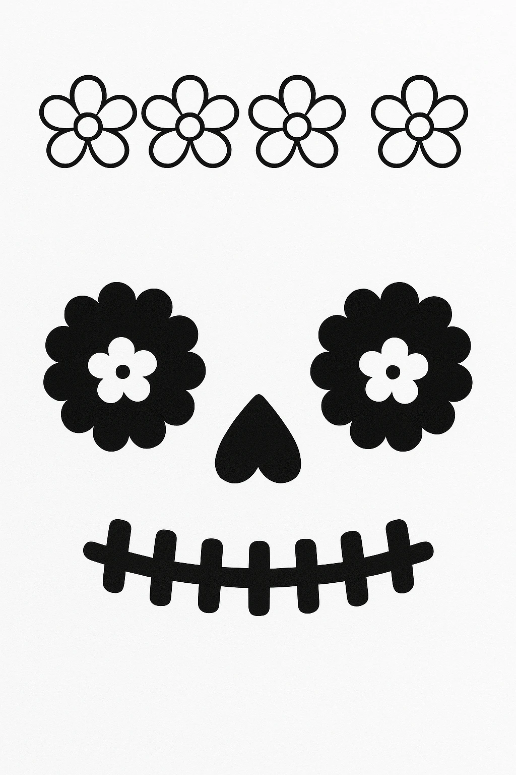 To make crafting even easier, we've included a printable template for the sugar skull face pieces and the paper flowers. Simply print the page on standard 8.5" x 11" paper, cut out the shapes, and trace them onto your chosen cardstock colors. Kids can also color in the shapes before cutting for a more personalized look. With the template, there's no need to draw the designs yourself—just print, cut, and glue.