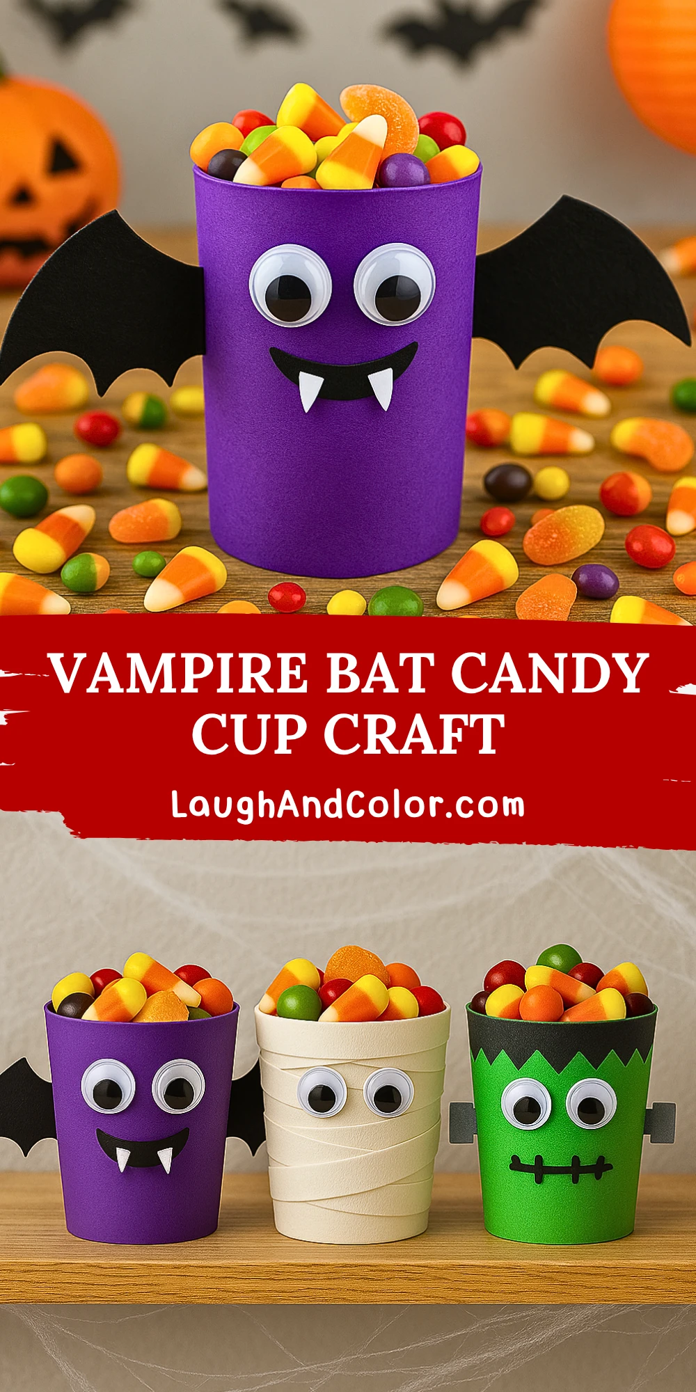 Create this spooky and fun Vampire Bat Candy Cup Craft for Halloween! Perfect for Halloween party favors, trick-or-treat giveaways, or classroom crafts, this easy DIY project uses simple materials like paper cups, cardstock, googly eyes, and candy. A great seasonal activity for kids and families, this craft is festive, budget-friendly, and full of personality.