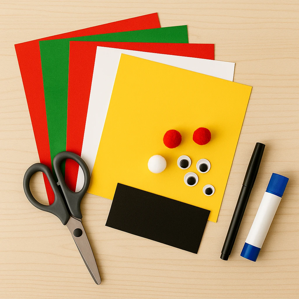 Start with the Grinch’s head. Glue the yellow eye shapes in place, then add the black eyebrows and nose. Use a black marker to draw his signature mischievous smile. If you prefer, use googly eyes for a fun 3D look!