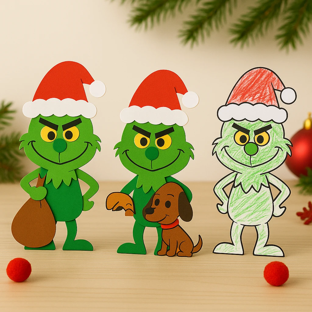 This standing ornament is made using simple materials like colored cardstock, glue, and scissors, and includes a printable template that makes it a breeze to assemble. Kids will enjoy putting their favorite grumpy character together, while adults will appreciate how adorable (and just a bit naughty) it looks standing tall on any shelf or desk. Let’s dive into this creative Whoville-inspired activity!