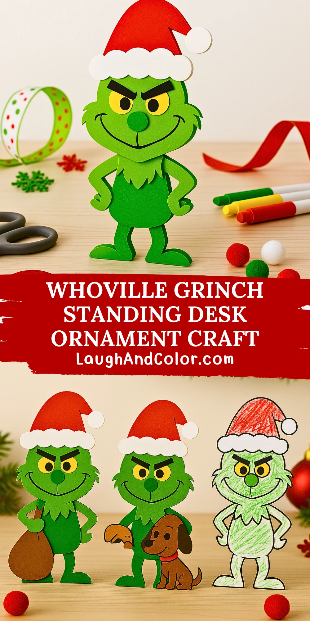 Bring a dash of mischief and a whole lot of holiday cheer to your desk with this Whoville Grinch Standing Ornament Craft! Inspired by the iconic green character we all love to loathe, this festive project is an easy and fun way to get into the Christmas spirit. Whether you're crafting with kids, decorating your workspace, or looking for a playful addition to your holiday décor, this Grinchy ornament will steal the spotlight—without stealing Christmas!